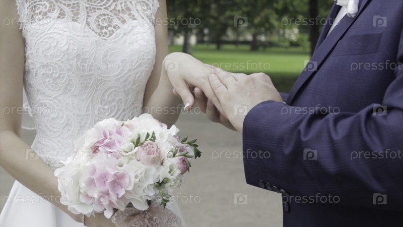 Невеста и жених ходят и держатся за руки на лугу. Широкоугольный закат солнца. Женихи гуляют вдоль реки, улыбаются и целуются. Свадебная семья, невеста, жених и их дети проходят по осеннему парку в день свадьбы