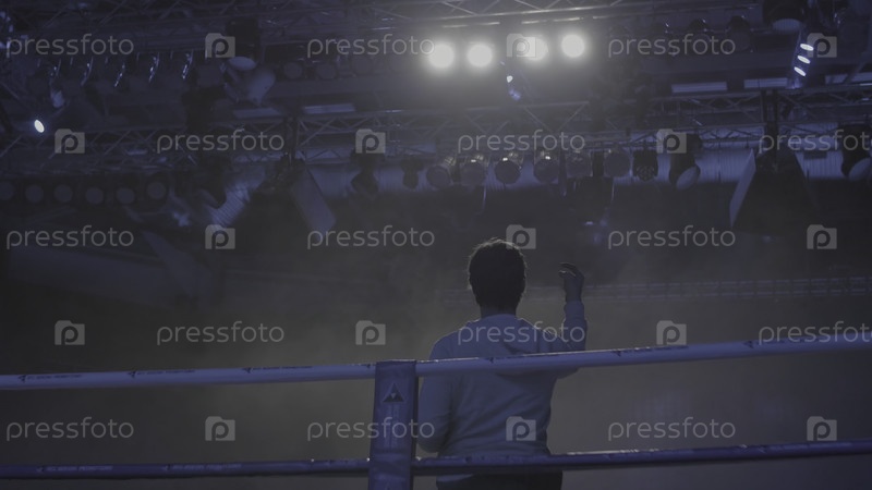 Обратный вид рабочего гаффера или техника освещения и фоновый прожектор. Техника освещения путем размещения света во время съемки. Технологии освещения, работающие со шлингами во время концерта