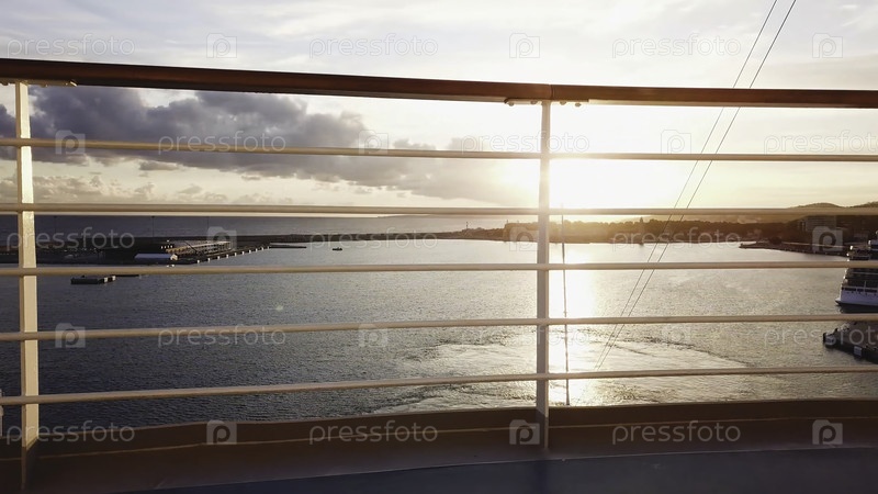 Вид с яхты до захода солнца на море.Сток.Прекрасный драматический закат на море.Мечты сбываются