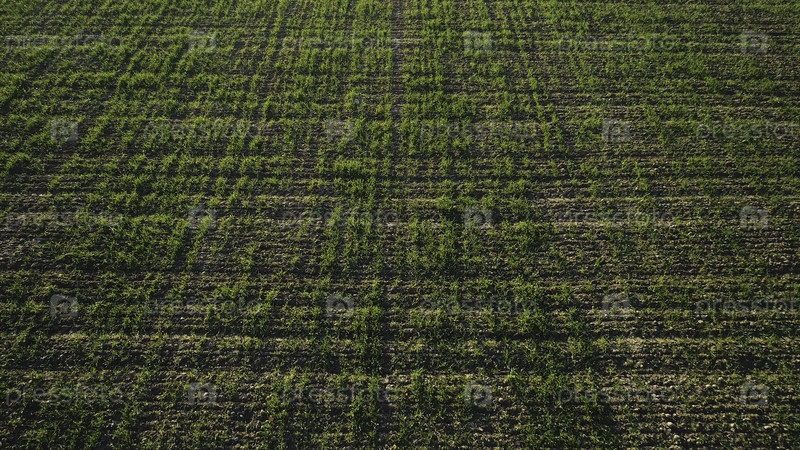 Вид с воздуха зеленых кукурузных полей, растущих рядами, концепция сельского хозяйства