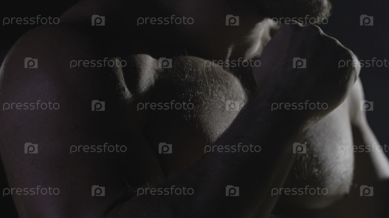 Боксер с сильными руками и зажатыми кулаками на черном фоне