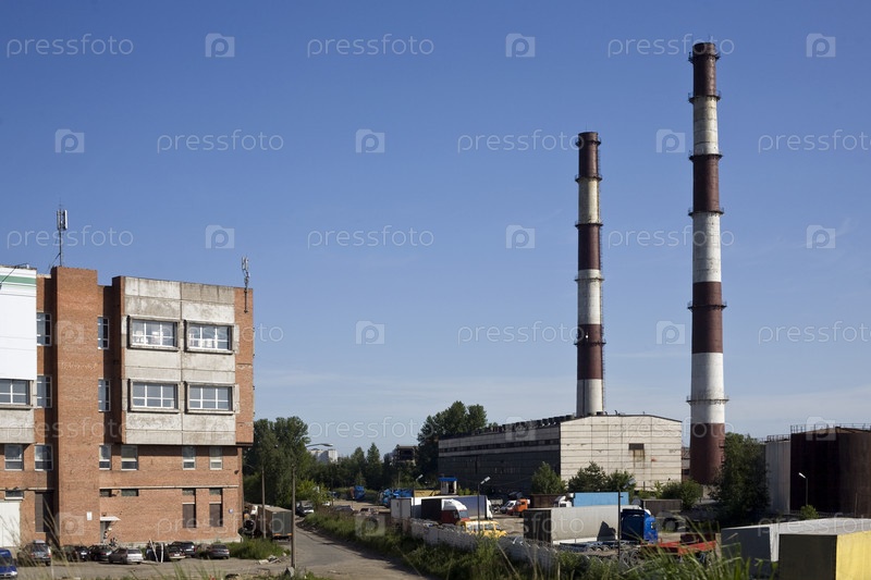 Промышленная зона со зданиями и трубами