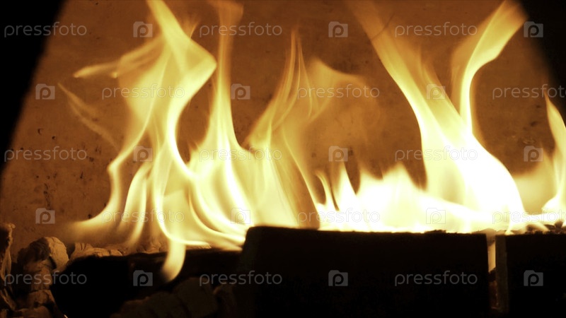 Традиционная печь, горящие леса и пламя в камине