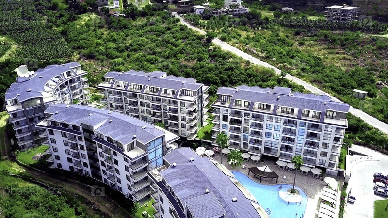 Вид на курорты с отелями и бассейнами. Красивый комплекс отелей для летних каникул и отдыха всей семьи