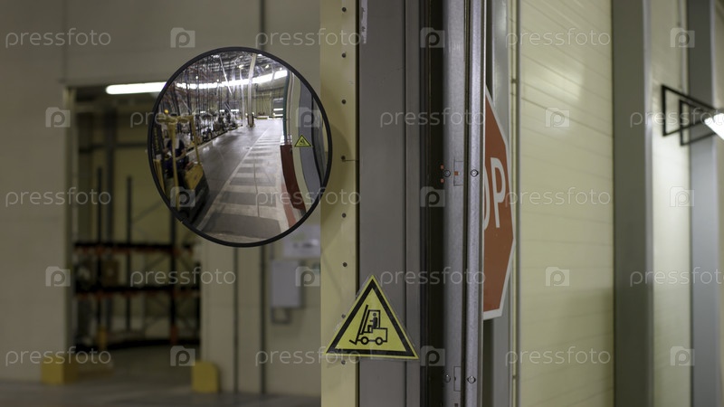 Молодой человек в рабочей одежде, водитель Рихтрук занят работой на складе логистического склада. Мужчина ведет погрузчик через склад на фабрике