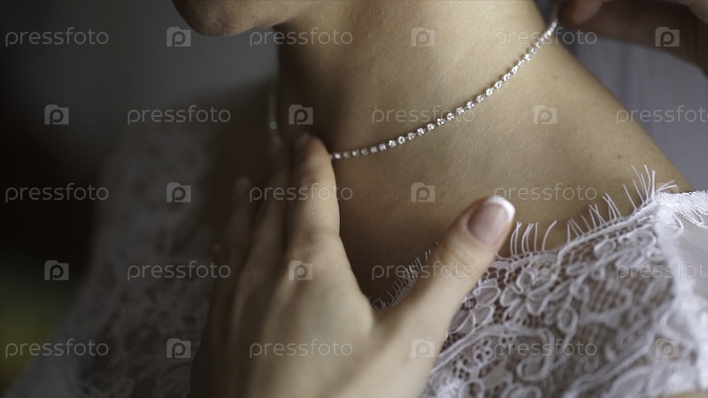 Браслет и ожерелье. Женщина пробует на себе браслет с ювелирными украшениями. Невеста сокровищами. Женщина с драгоценностями. Девушка с модными украшениями, серьгами, браслетами и ожерельями