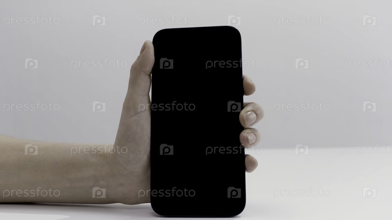 Покройте руку женщины, активируя красивый новый смартфон, изолированный на белом фоне