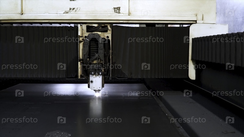 Вырезать листовой металл в мастерской. Клип. Волокнистые лазерные машины для близкой резки металла. Современный инструмент в тяжелой промышленности. Опасная работа. Высокоточное производство стальных деталей. Закройте плазменную резалку