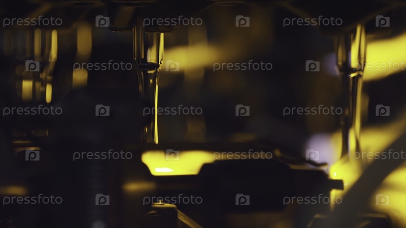 Производство стеклянных бутылок. Переработка стекла. Сток. Промышленный завод по производству бутылок. Расплавленное стекло. Стекольная фабрика. Автоматизированная линия производства. Печь. Рециклирование. Бутылки перемещаются через автоматический конвейе