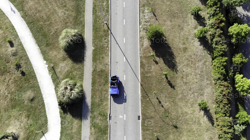 Люди путешествуют, проезжая через красивые сельские пейзажи в солнечное лето. вид с высоты автомобиля Jeep Wrangler, припаркованного на пустой дороге, простирающейся по сухим полям и зеленым кустарникам