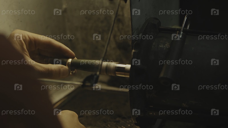 Производство колец. Ювелир работает с кольцом восковой модели в своей мастерской. Изготовление ювелирных изделий. Детальное изображение с низкой глубиной резкости. Ювелир делает ручные украшения на винтажном рабочем столе. Изготовление драгоценностей