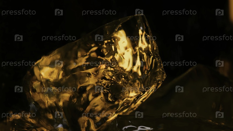 Прекрасные кубики льда, освещенные неоновым светом и заполненные напитком на темном фоне