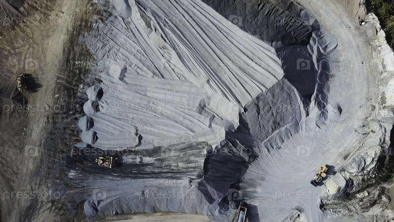 Вид с воздуха на гравийный карьер и профессиональных экскаваторов на работе. резервные кадры. вид промышленного ландшафта после добычи камня, строительной отрасли
