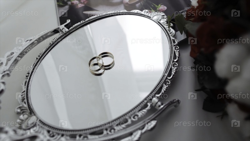 Красивые обручальные кольца на старом зеркале