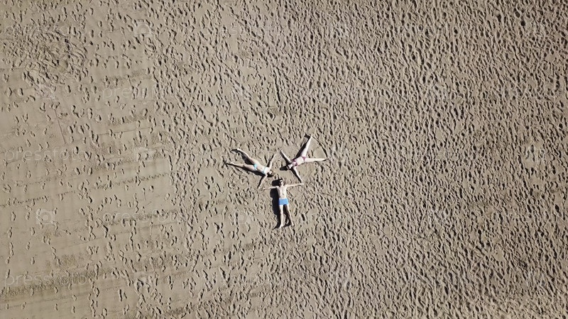 Группа друзей лежит на пляже. видео. тропические каникулы в море. вид счастливых людей, наслаждающихся летним путешествием