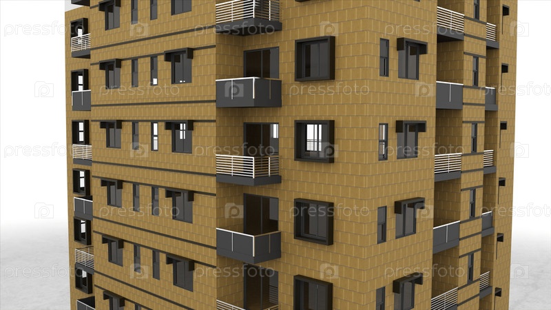 Абстрактный фасад жилого многоэтажного дома изолирован на белом фоне. резервные кадры. анимированная 3D-модель многоэтажного здания