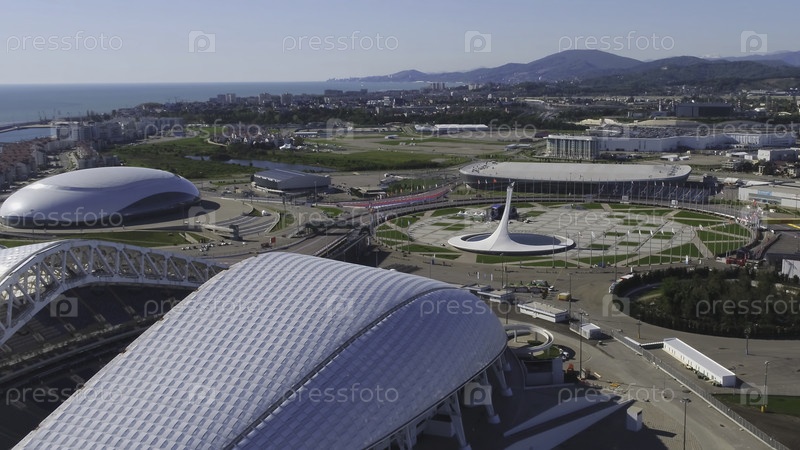 Футбольный стадион Fischt. Сочи Адлер, Россия, Олимпийский факел и стадион Fisht, построенный для зимних Олимпийских игр 2014 года. Стадион Fischt, главная церемониальная площадка, олимпийская чаша огня в Soha. футбольный стадион Кубка конфедераций FIFA 2