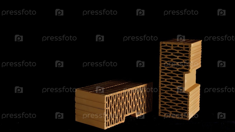 Небольшая куча красных керамических блоков, медленно движущихся в изоляции на черном фоне, строительные материалы