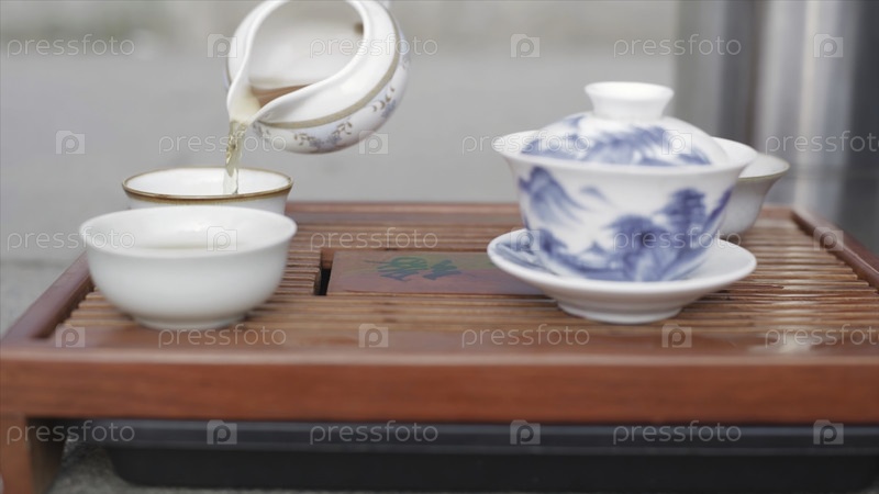 Китайская чайная церемония. видео. ближайший стол для чаепития, блюда и аксессуары. китайская чайная церемония Под руководством Чайного мастера