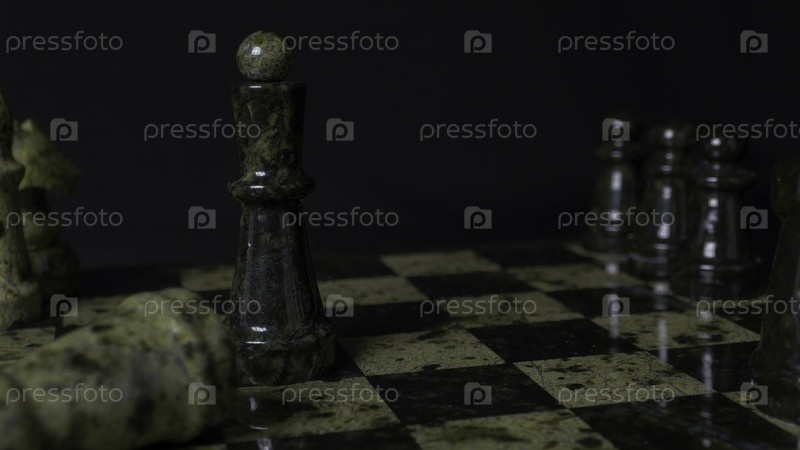 Черная королева побеждает белый камень в шахматах. Шахматы Королевы выигрывают игру. Детали фигуры на черном фоне. Выборочные элементы
