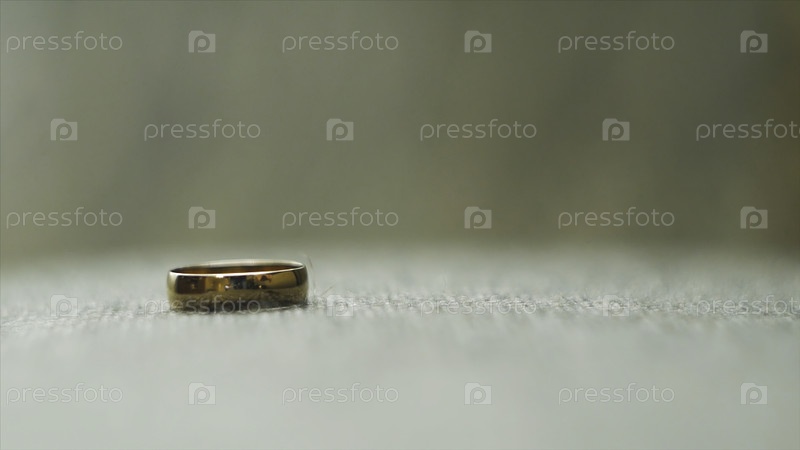 Одно золотое обручальное кольцо перевернуто на другое. видео. обручальные кольца. два хорошо использованных золотых обручальных кольца на сером фоне. свадебная жемчужина