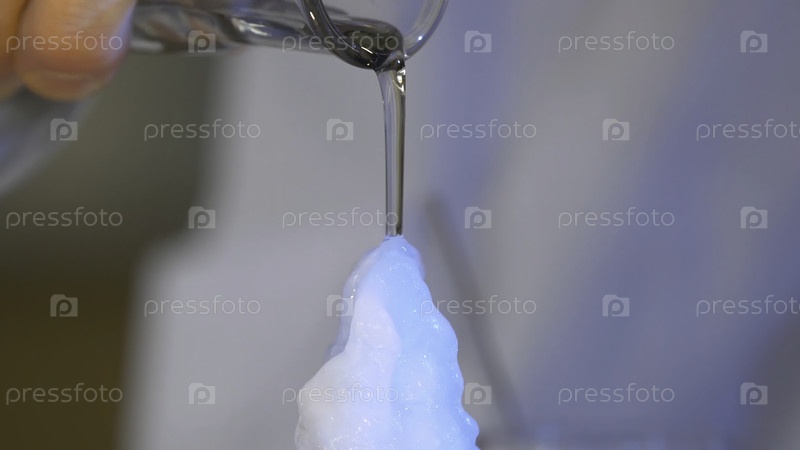 Жидкость заливается из стакана на черный стол и сразу замерзает