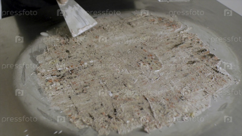 Процесс приготовления жареного мороженого. Клип. Таиландское жареное мороженое валяется в холодильнике. Органическое, натуральное мороженое, десерт ручной работы. Машина для гриля с охлажденной стальной кастрюлей. Приготовление тайского мороженого - Закро
