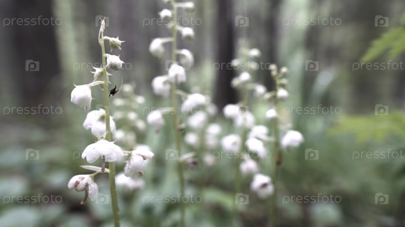 Покройте лилию долины белыми цветами, растущими в лесу. резервные кадры. цветочный фон, мягкие и красивые весенние цветы