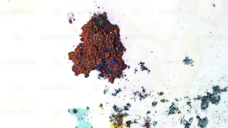 Цветные сухие чернила, движущиеся на белом молочном фоне, вид сверху