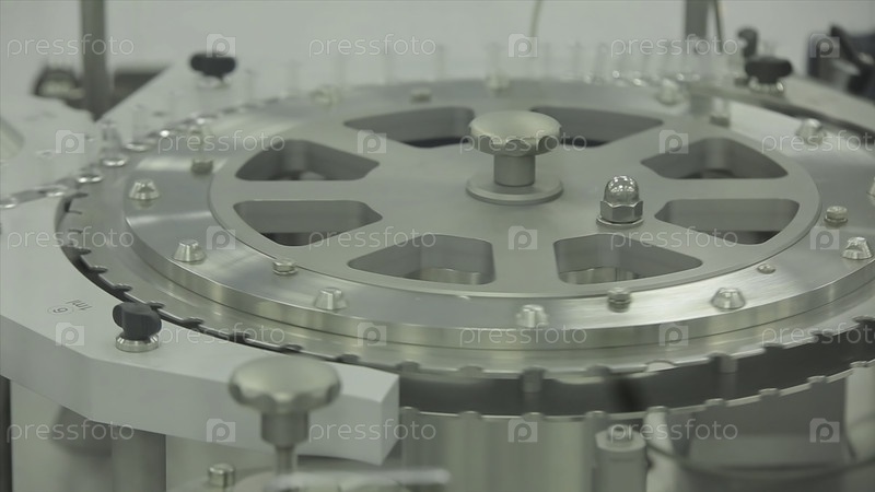 Фармацевтическая промышленность. Производственная линия машинного конвейера со стеклянными бутылками ампул на заводе. Таблетки или капсулы счетчика на фабрике. Наука и медицина