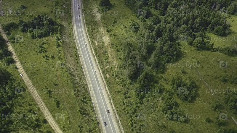 Сельская дорога окружена пышной зеленой природой. Клип. Вид сельской дороги в лесу. Сельское дорожное движение