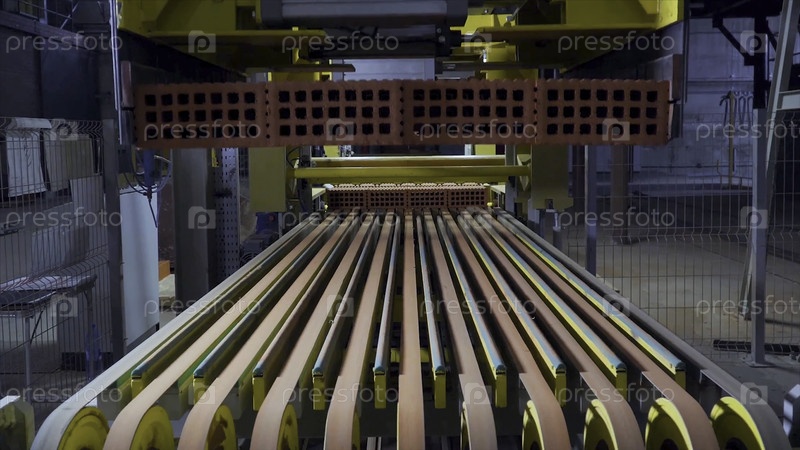 Завод по производству строительного материала с готовым кирпичом, промышленное строительство. Производство кирпичей на заводе. Рабочий процесс, крупный план. Много HD-кирпичей
