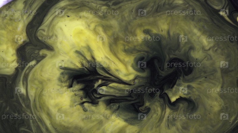 Вид на красочные краски, смешанные с водой. Красивое желто-черное фоновое пятничное чернила