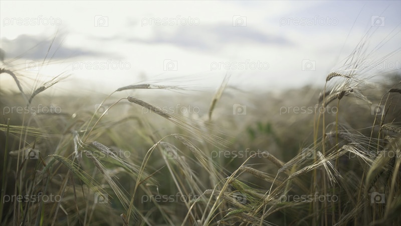 Колючки переносной травы на фоне других колючек переносной травы. видео. сельскохозяйственный фон с созревшими колючками ржи в золотых лучах слабого солнечного света