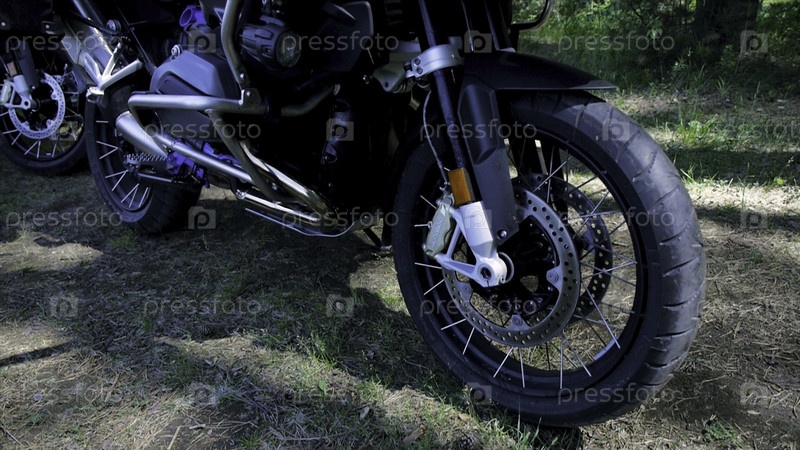 Закрытие мотоциклетного колеса, лесный фон. Клип. Закрытие испытаний велосипедных колёсов во время соревнований в природном парке