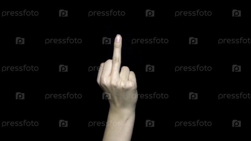 Знак руки, показывающий средний палец грубым образом означает 'отвали', изолированный на черном фоне