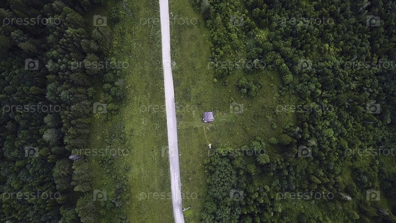 Вид с воздуха летних зеленых деревьев, рек, дорог на фоне леса. Вид с воздуха изогнутой тропы в горах. Вид из воздуха автомобилей, едущих по сельской дороге в лесу. Вид с воздуха пролетел над старой заправленной двухполосной лесной дорогой с