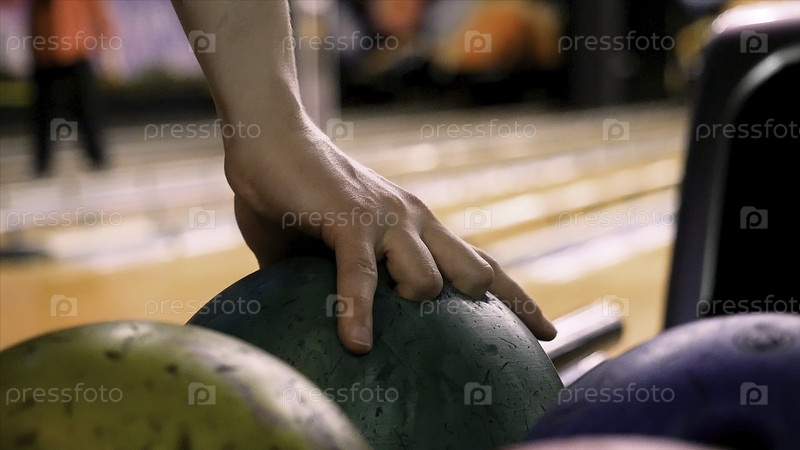 Покройте руку игрока, вытащив мяч из стойки и бросая его в боулинг-поле.Игрок выбрасывает шарик для боулинга, который стучится и качается