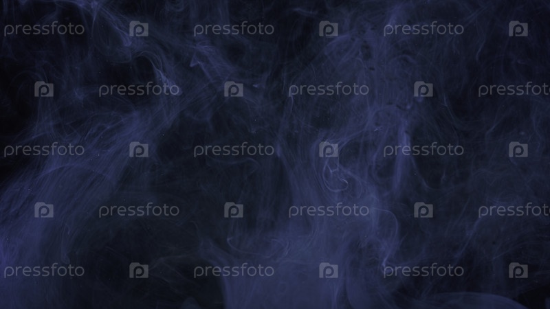 Голубые капли смеси краски в медленном движении воды. резервные кадры. гладкие вихри чернил и брызги сверху под водой, оставляя облако чернила на чёрном фоне