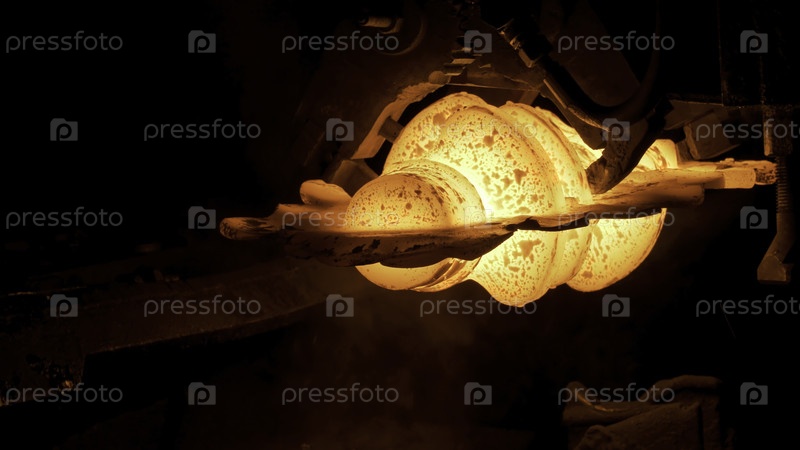 Закрытие горячих стальных деталей на сталелитейном заводе, концепция тяжелой металлургии Сцена Процесс производства металлических частей в печи в горячей мастерской