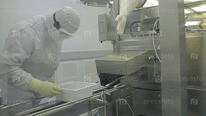 Фармацевтическая промышленность.Работник мужской фабрики проверяет качество упаковки таблеток на фармацевтической фабрике.Автоматическая лента для создания упаковки и заполнения лекарств.Контроль на HD Medical Factory