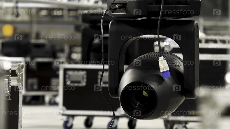 Закрытие прожектора, элемент освещения сцены, концепция профессионального оборудования. Резервные кадры. Осветительное устройство выключено во время установки сцены