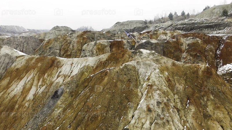 Мужчина-алпинист, путешествующий по заснеженной вершине горы на закате зимой. Видео. Воздух - Закройте взрослого альпиниста в тёплой одежде, когда вы прогуливаетесь через заснеженную горную вершину при прекрасном зимнем закате