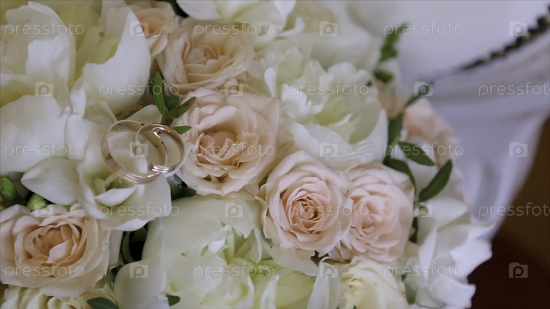 Свадебный букет роз. Букет невест в день свадьбы. Букет различных цветов. Букет красивых розово-белых или красных роз на стуле. Розы
