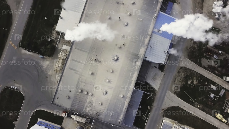 Завод по производству цемента, клинкера и гипса. Резервные кадры. Вид с воздуха на комбинат смешивания бетона, промышленную зону в солнечный летний день