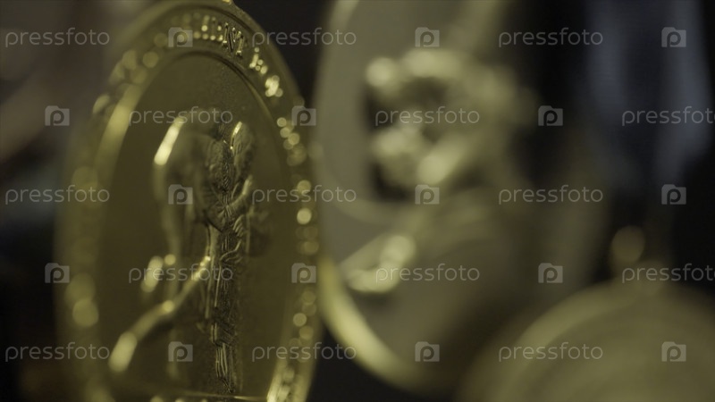 Много золотых медалей с трехцветными ближайшими лентами. Медаль за первое место в соревнованиях по дзюдо. Многие медали, чтобы выиграть