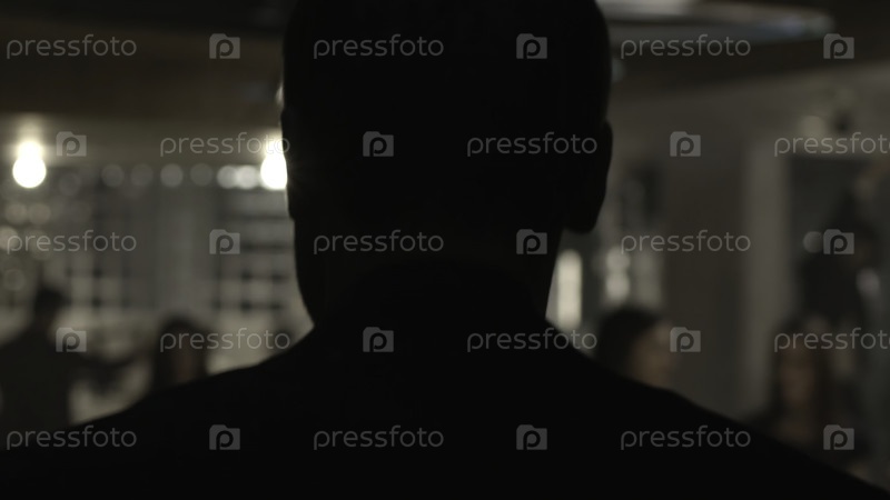 Walking Man in Suit, Back View, blurred background Мужчина в костюме проходит по рабочему помещению - ближайший снимок сзади