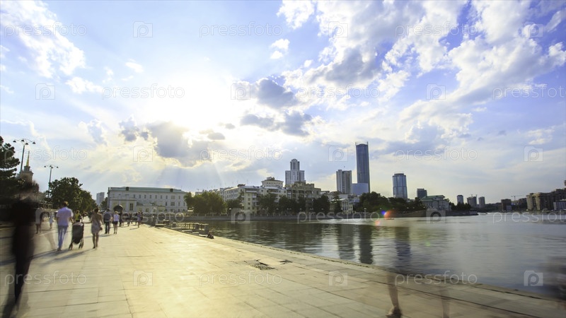 Прогулка вдоль набережной, Екатеринбург, Россия, Время истекло. Гиперлапсное видео. Восход солнца на набережной, Екатеринбург. Восход солнца в Екатеринбурге, Россия