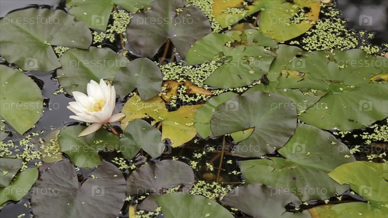 Красивый цветок и листья в болоте. Болотный лотос. Цветок и листья в озере. Растения и болота HD