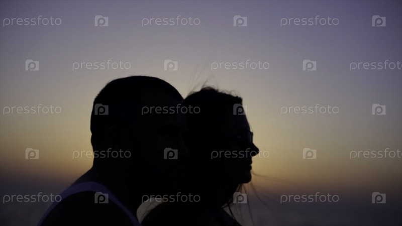 Идея о силуэте молодой пары на закате в парке. 'Сток'